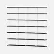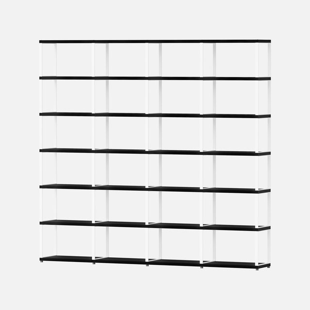 Supplied as flat packed panels, requires assembly. Overall outside dimensions 2180 mm high x 2310 mm wide x 330mm deep High quality black European made 27mm thickness laminated panels combine with white powder coated steel frames for a rigid, heavy duty storage cube shelf system, ideal for any room in the house or business (ideal for shop fitting) to store books, vinyl records, wine bottles, office files and equipment or general retail display products. All fixings and screws required are supplied for easy assembly. Boon maxx metal kits can be added to as required by purchasing more maxx XL, maxx L sized panels, frames, fixing kits, and feet kits as needed. Boon wide coloured soft boxes, 90 degree corners, all are available on this website see the link here .