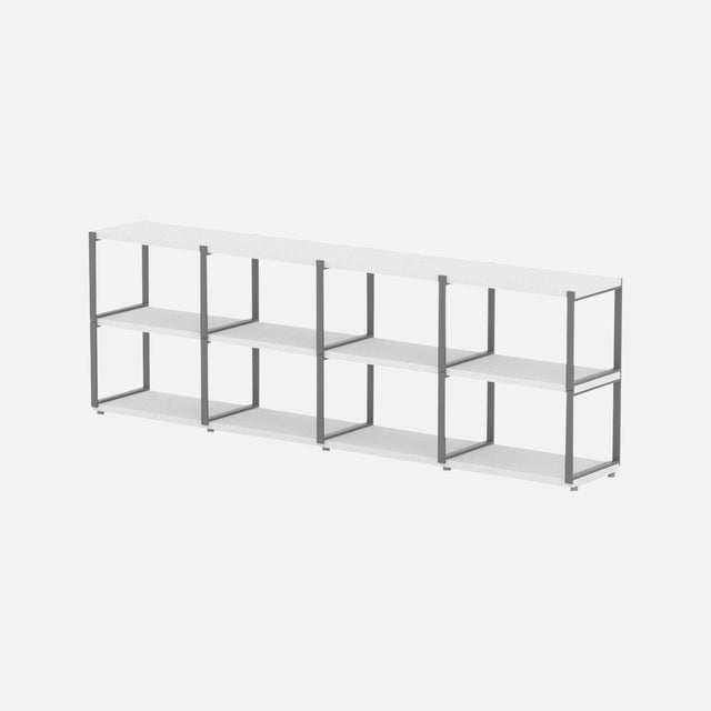 The MAXX Metal modular shelf system prioritises strength, simplicity, and versatility. Constructed from high-quality 28mm thick eco-friendly boards and sturdy steel frames, it offers ample rectangular shelving that effortlessly supports heavy books, files, and decor, making it suitable for both professional and home settings