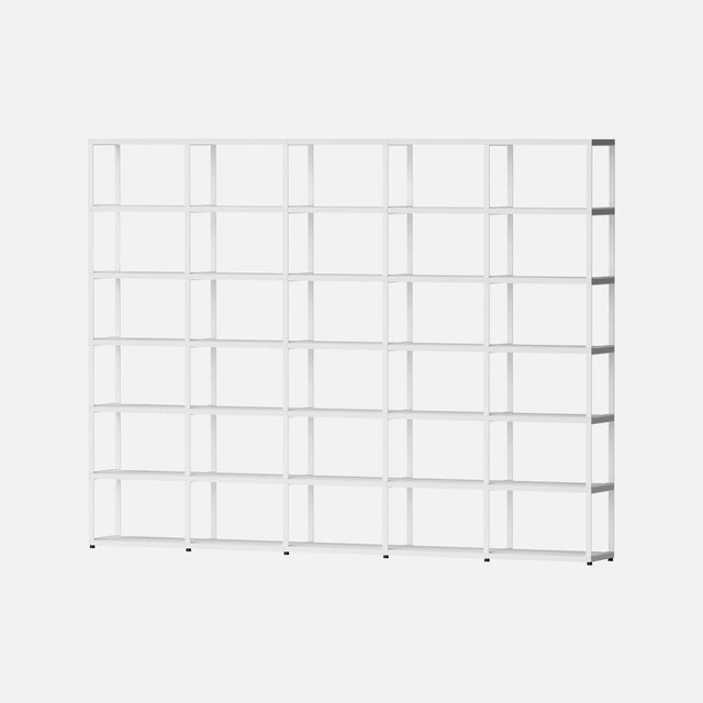 Supplied as flat packed panels, requires assembly. Overall outside dimensions 2180 mm high x 2880 mm wide x 330mm deep High quality white finish European made 27mm thickness laminated panels combine with white powder coated steel frames for a rigid, heavy duty storage cube shelf system, ideal for any room in the house or business (ideal for shop fitting) to store books, vinyl records, wine bottles, office files and equipment or for in store merchandising of retail products. All fixings and screws required are supplied for easy assembly. Boon maxx metal kits can be added to as required by purchasing more maxx XL, maxx L sized panels, frames, fixing kits, and feet kits as needed.