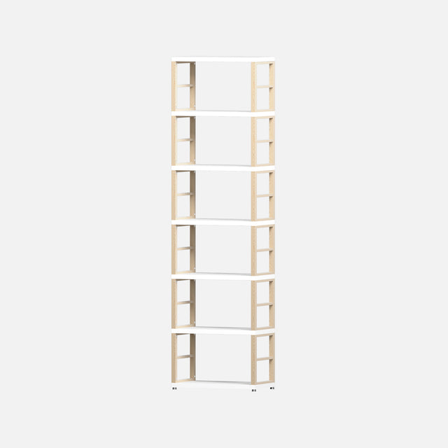 Supplied as flat packed panels, requires assembly. Overall outside dimensions 2180 mm high x 600 mm wide x 330mm deep 12 x F Oak wood frames, 7 maxx XL 27mm thickness European made white laminated panels combine to make the 1x6 maxx Boon floor cube kit, each cube with inside dimensions of 54x33x33cm. High quality, rigid, heavy duty storage cube shelf, ideal for, bed side storage, wardrobe storage, vinyl records, books, wine bottles and is perfect for the merchandising and promotion of instore retail products. All the fixings and screws required are supplied for easy assembly. Boon maxx kits can be added to as required by purchasing more maxx XL, maxx L sized panels, frames, fixing kits, and feet kits as needed. Boon wide coloured soft boxes, 90 degree corners all available here .