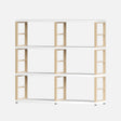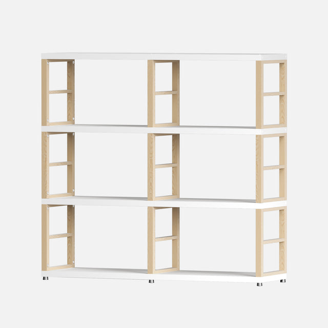 Supplied as flat-packed panels, this European-made Boon MAXX 2x3 requires assembly. Measuring 1120 mm high, 1170 mm wide, and 330 mm deep, it features nine solid oak frames and 27mm thick white laminated panels. Each cube offers internal dimensions of 54x33x33 cm, providing a sturdy, heavy-duty storage solution. Perfect for bedside storage, wardrobes, vinyl records, books, office files, and wine bottles, it also suits retail settings. All necessary fixings and screws are included for straightforward assembly. The system is expandable with additional panels, frames, fixing kits, feet, and accessories like coloured soft boxes and corner units.