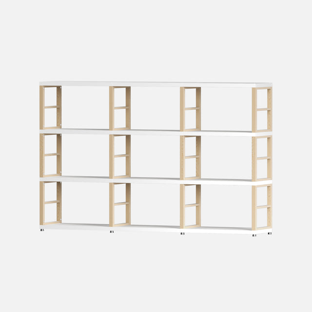 This European-made Boon MAXX 3x3 floor cube kit arrives as flat-packed panels requiring assembly. Measuring 1120 mm high, 1740 mm wide, and 330 mm deep, it features 12 solid oak frames (4 maxx XL and 8 maxx L) combined with 27mm thick white laminated panels. Each cube offers internal dimensions of 54x33x33 cm. Designed for durability and versatility, it’s ideal for bedroom or wardrobe storage, vinyl records, books, wine bottles, and retail displays. The modular design allows expansion with additional panels and accessories, all included with necessary fixings for straightforward assembly.