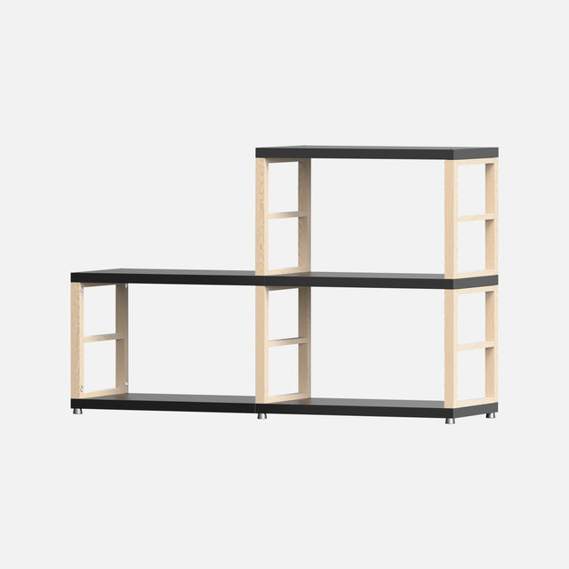 This European-made Boon MAXX Black and Oak 2 Step unit comes as flat-packed panels requiring assembly. Measuring 760 mm high, 1170 mm wide, and 330 mm deep, it features five solid oak frames and five black laminated panels of 27mm thickness. Designed for durability and rigidity, this versatile storage cube is perfect for bedside storage, wardrobes, vinyl records, books, office files, wine bottles, or retail displays. All necessary fixings are included for straightforward assembly. Expandable with additional panels, frames, and accessories, it offers customisable storage solutions for various needs.