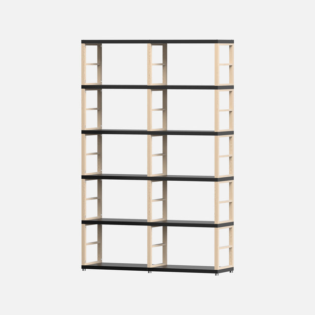 This European-made Boon MAXX Black and Oak 2x5 floor cube kit comes as flat-packed panels requiring assembly. Measuring 1830 mm high, 1170 mm wide, and 330 mm deep, it features 15 solid oak frames and 12 black laminated panels of 27mm thickness. Each cube offers internal dimensions of 54x33x33 cm, providing sturdy, heavy-duty storage perfect for bedrooms, wardrobes, vinyl records, books, office files, wine bottles, or as a room divider and retail display. All necessary fixings are included. The system is expandable with additional panels, frames, and accessories available.