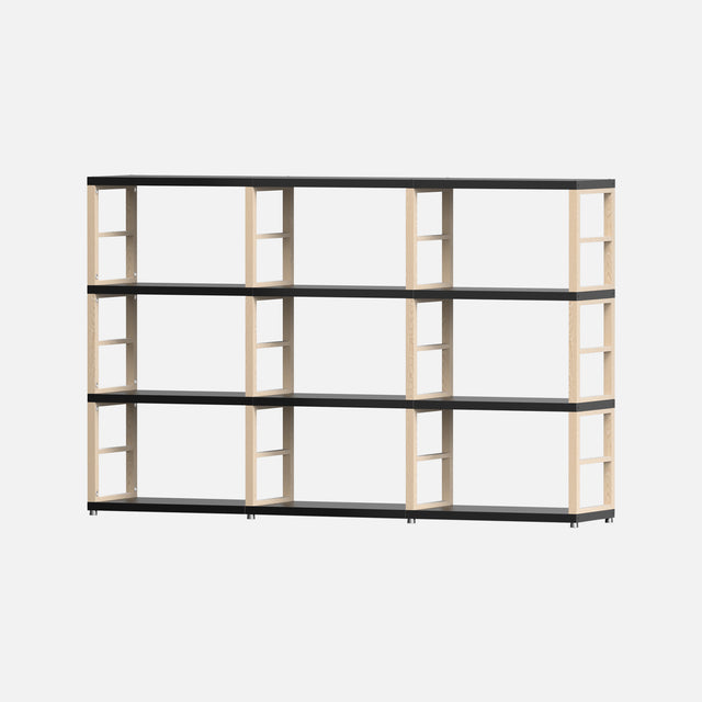 This European-made Boon MAXX Black and Oak 3x3 storage unit arrives as flat-packed panels requiring assembly. Measuring 1120 mm high, 1740 mm wide, and 330 mm deep, it features 12 solid oak frames and 27mm thick black laminated panels crafted in Europe. Each cube offers internal dimensions of 54x33x33 cm, providing a sturdy, heavy-duty solution ideal for organizing bedrooms, wardrobes, vinyl records, books, office files, wine bottles, or retail displays. Complete with all necessary fixings, this modular system can be expanded with additional panels, frames, and accessories to suit evolving storage needs.