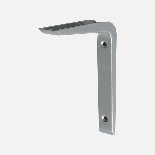 Ideal for use to fit shelves of any length and up to 20cm deep for the best weight capacity. Fit these high quality powdercoated heavy duty Taiwanese made brackets to coincide with the stud positions in a cavity wall, or spaced at approximately 50 cm apart into solid brick/cement type walls. Fit our European made 600x150x18mm Silver shelf here , or the Silver bow fronted shelf here , using a pair of these Strong beam brackets. Alternatively select the wood finish Oak sand shelf here , or the Green finish shelf here . For the best weight capacity, the long side of the bracket should be attached to the wall surface. Brackets can be fitted to gyprock sheet using our wall anchors part number HW3, use 2 per bracket. Weight capacity would then be dependent on the strength of the wall sheet, but expect up to 10kg per pair when fitted correctly by an experienced shelving installer.