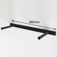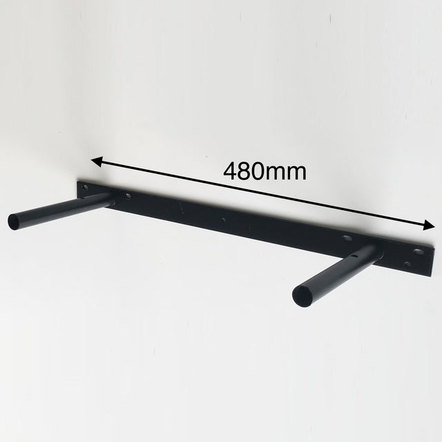 This floating shelf bracket measures 480x30x3mm and supports shelves 50-90cm long, 25-30cm deep, and at least 3.8cm thick. It can hold up to 15kg depending on wall type and installation quality. The bracket features multiple predrilled holes for secure fixing to studs or hollow walls, with support tubes designed to reduce shelf droop. Proper installation is essential for stability and weight capacity. For longer or deeper shelves, use multiple brackets. Always check bracket dimensions before drilling your custom shelf.
