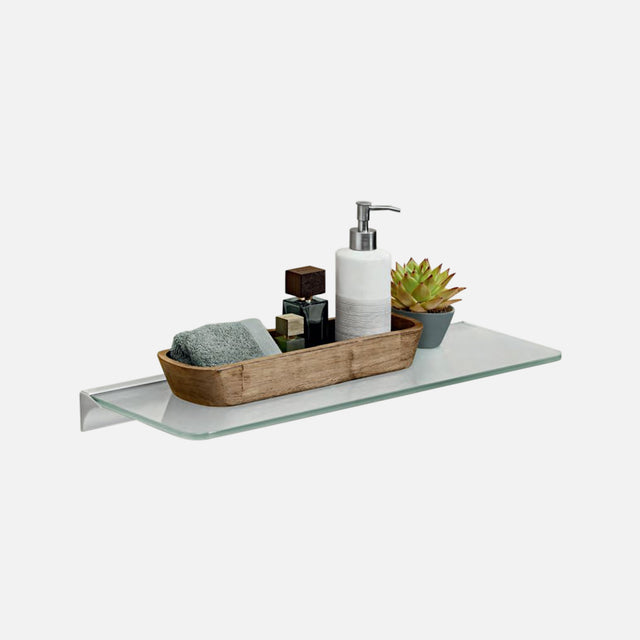 High quality 8mm thickness toughened frosted glass is 600mm long x 200mm deep with 2 square and 2 round corners. Clean modern minimalist lines, simple to fit in areas such as bathrooms, bars, kitchens, salons or as feature shelving in any room of the home and is particularly ideal in shop fitting installations. Weight capacity of up to 20kg of evenly spread load on the shelf, when fitted correctly by an experienced shelving installer fitting into good condition solid brick/cement walls (screws and masonry wall plugs are included) or to the wooden studs in a cavity type hollow wall.
