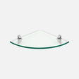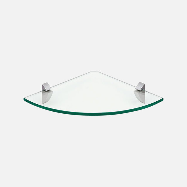 Available exclusively at Shelving Shop, this toughened safety glass corner shelf measures 250mm x 250mm with an 8mm thickness and includes two Italian-made polycarbonate clip brackets finished in a subtle matte silver. It is ideal for installation in wet environments like shower corners, bathrooms, and laundries, as well as for display or storage in any corner of your home, office, or retail setting.
