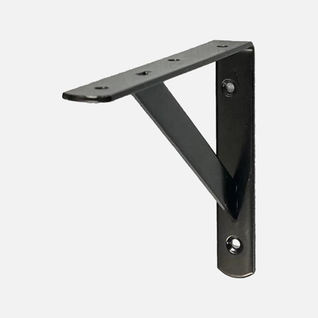 New to shelvingshop are the black beam brackets 150x200x25mm wide. Use these brackets to fit shelves up to 300mm deep and any length spacing brackets at approximately 60cm centres or on all studs which coincide with the desired shelf positions when being fitted to a stud wall. Weight capacity up to 40kg per pair when fitted correctly into a masonry wall. As with all shelf brackets they must be fitted with the correct fixings to suit the wall type and the weight capacity required. Ensure the shelves are screw fixed to the bracket through the provided countersunk holes.