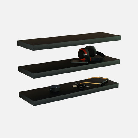 Matte Black Floating Shelves 800x150x38mm (Triple Deal)