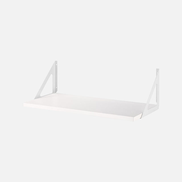 Quality German manufactured shelf and bracket kit consists of a high quality thick laminated white shelf which is 600mm long x 250mm deep and is 19mm thick. 2 x White Tri brackets supplied with the kit. (Silver Tri brackets are also available on request) Strong and modern, the shelf kit can be fitted to any wall using the correct fixings, maximum weight capacity is only achieved when fixing to a good condition solid brick type wall. Feature:-the brackets double as bookends, so the shelf kit is an excellent option for book storage. The brackets can also be used in the conventional way, supporting the shelf from underneath. The brackets can be fitted to hollow cavity type walls using high quality hollow wall fixings here . Use 2 per bracket (4 per shelf kit ).Note the weight capacity of the shelf would then be limited by the strength of the gyprock or drywall sheet but expect up to 10kg.