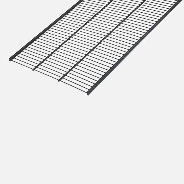 The functional wire shelf is designed to be used with uprights and brackets, making it a versatile component of any wardrobe or storage system. The open wire structure ensures excellent ventilation, making it ideal for storing textiles. Minimal dust accumulates on the round wire rods, and the open design helps you easily see and access the items on the shelves.
