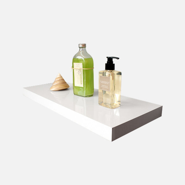 This high gloss white floating shelf features a seamless painted finish, eliminating visible laminate joints between the front face and shelf surfaces for a premium look. Included are the bracket, screws, and plugs designed for secure installation on brick or masonry walls. For optimal weight capacity, fixings must be anchored into solid brick, timber studs within cavity walls, or equivalent supports. For gyprock or drywall installations, high-quality hollow wall anchors (HW3), available separately, are recommended—five per shelf—to safely support up to 10kg when installed by a skilled professional. Properly fitted brackets remain firmly fixed with no visible movement under load.