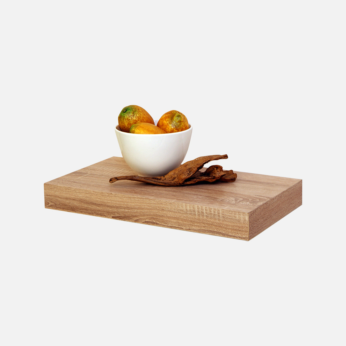 Our oak-finished floating shelf range combines strength and durability with a sophisticated design, making it an excellent storage solution for residential and commercial environments. Its sleek appearance enhances the elegance of any room.