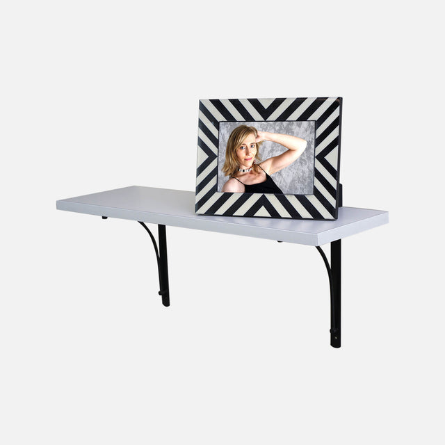 Modern and appealing is the latest White laminated shelf with a quality PVC edge made in Europe. Very simple to install, the 600x200x19mm thick shelf combines with two 230x180mm Black Arch brackets. Great for use anywhere in the home, office, for display shelving, or in shop fit outs. Weight capacity of up to 20 KG when fitted into solid brick type walls, or into the studs in a cavity gyprock type wall. The kit can be fitted to gyprock wall sheeting using these hollow wall anchors here , 2 are required per bracket, so use 4 per kit. The brackets have 2 provided holes for fixing to the wall and 2 holes for screw fixing into the shelf.