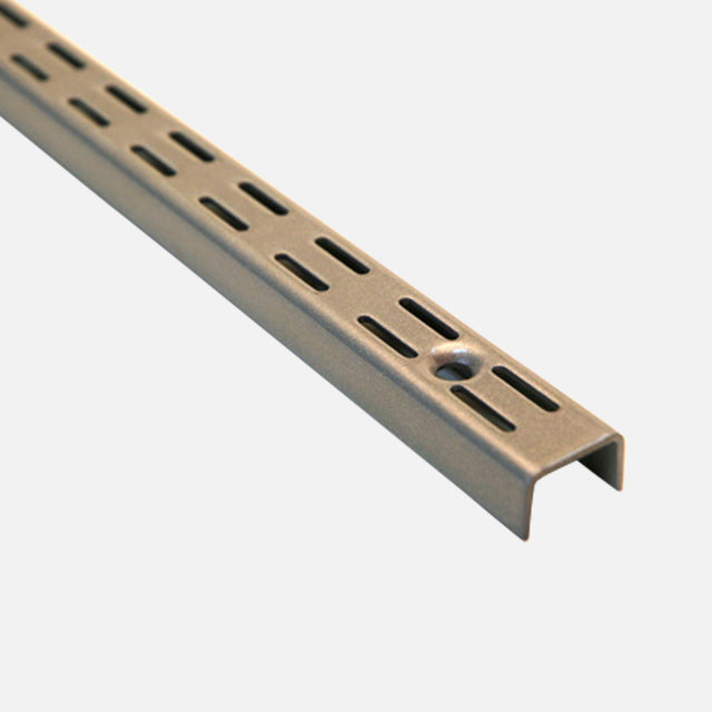 Use this high quality powdercoated (thicker gauge steel) 32mm pitch twintrack wall upright to mount any of the 32mm pitch twintrack brackets as featured on this website. Fix wall uprights to a brick/cement type wall spaced at approximately 50cm centres, or directly into the wooden studs in a cavity gyprock type wall using the upright fixing pack part 209043 . (4 fixing points per wall upright).